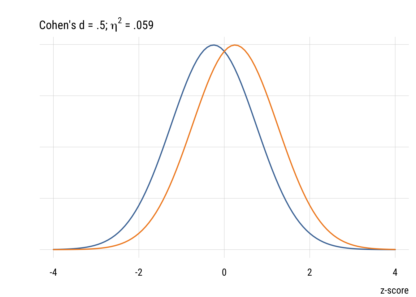 Although it’s common (people love guidelines!) you should NOT mechanically use Cohen’s d type values to interepret effect sizes in terms of small, medium, or large. But it’s useful to visualize what some differences look like.