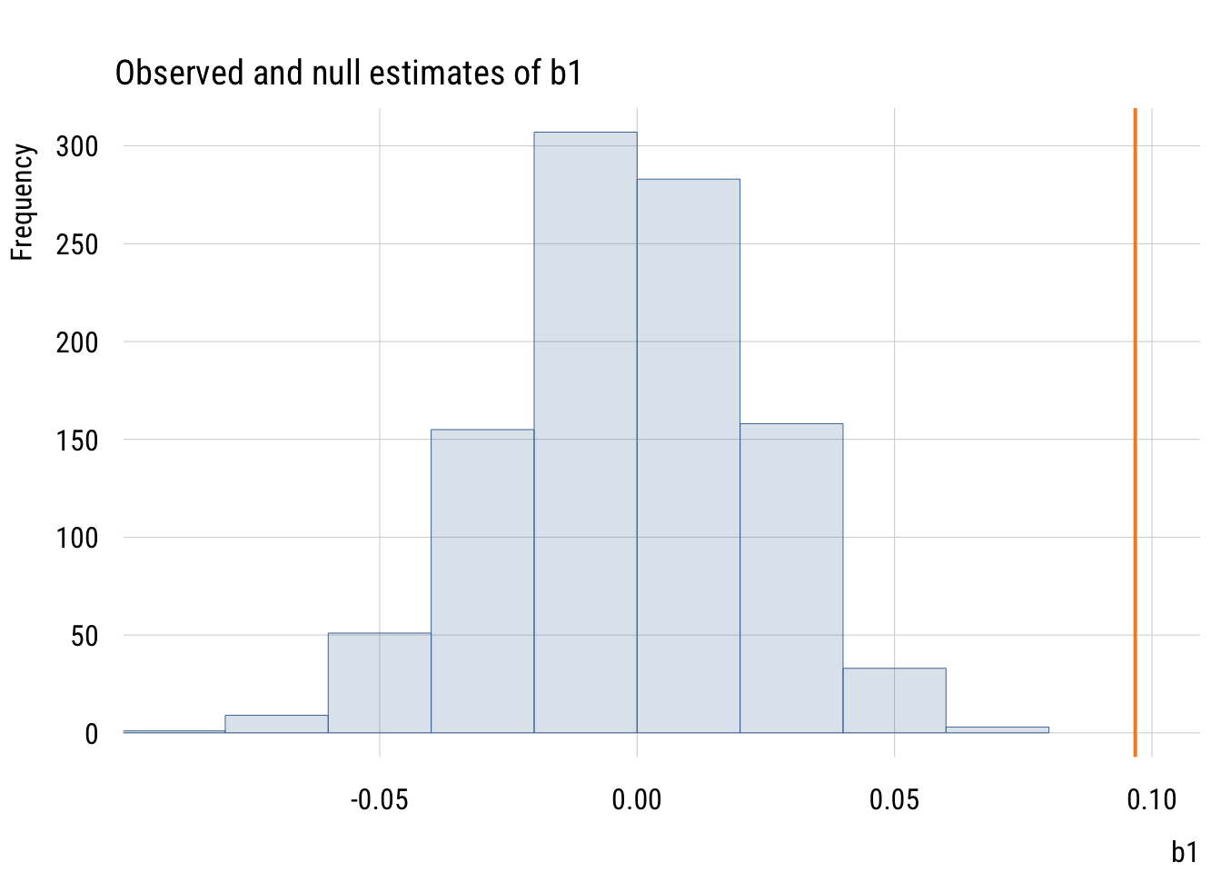 main = "Observed and null estimates of b1",