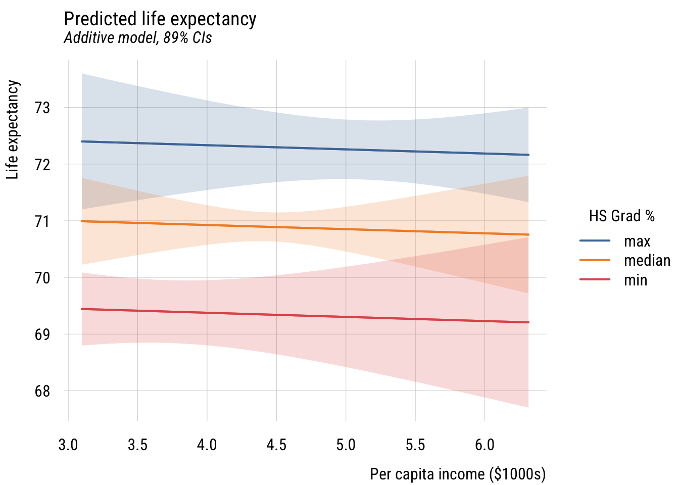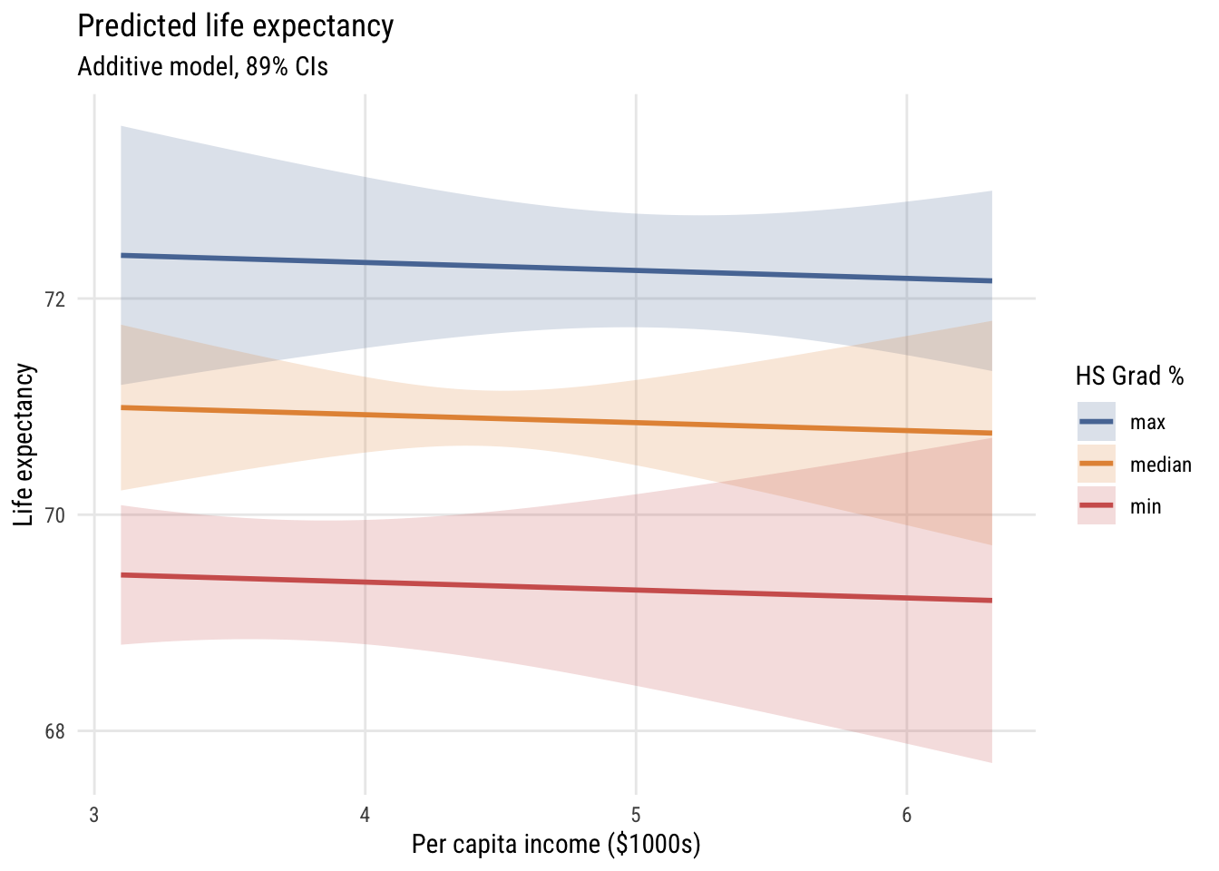 Let’s start with an additive model of life_exp as a function of hs_grad and inc1000: