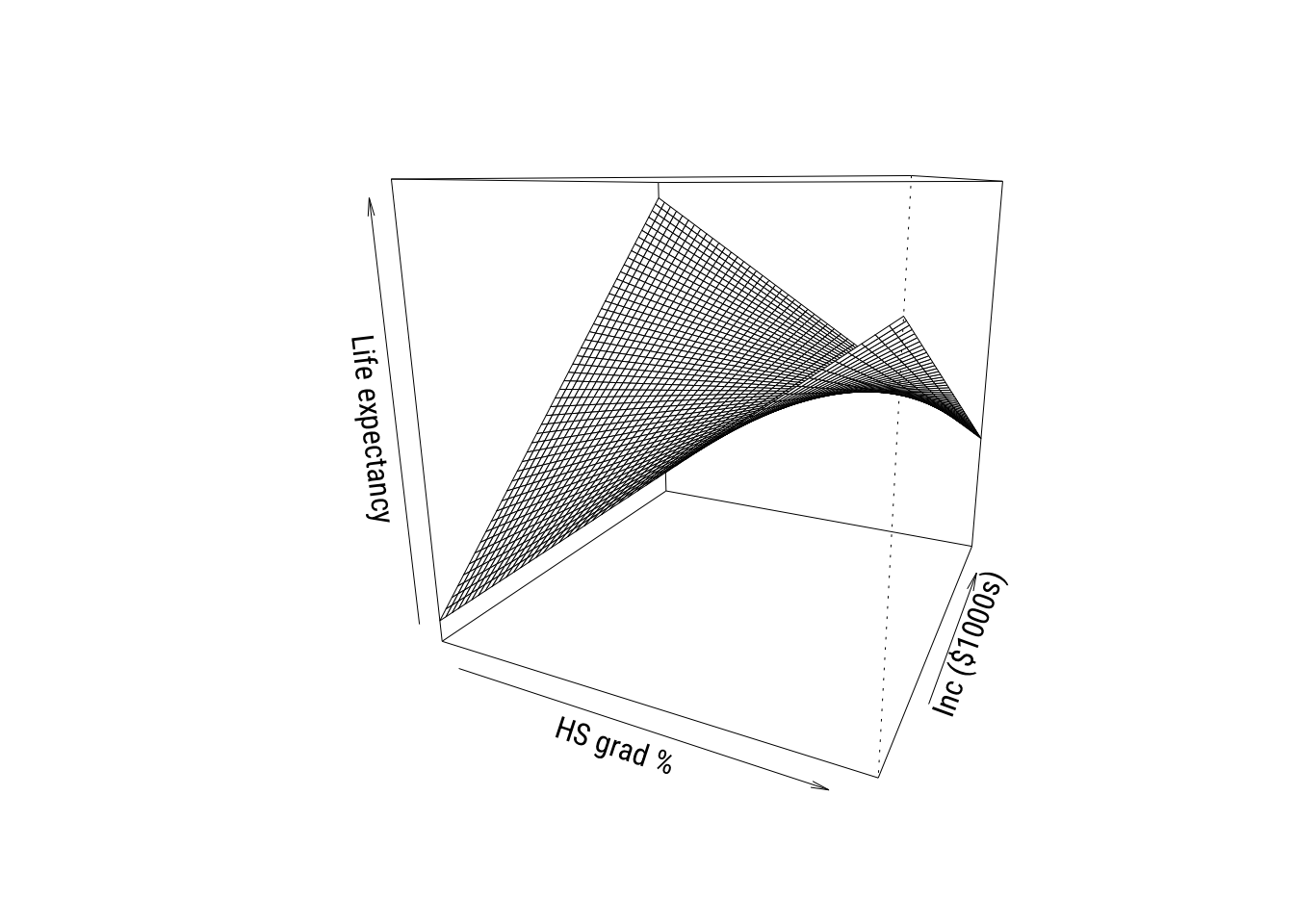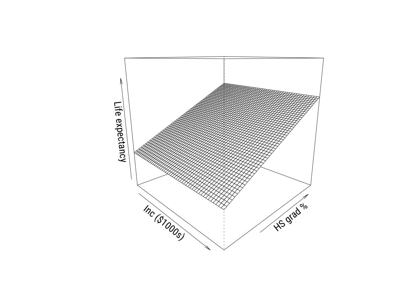 ylab = "HS grad %", xlab = "Inc ($1000s)", zlab = "Life expectancy",