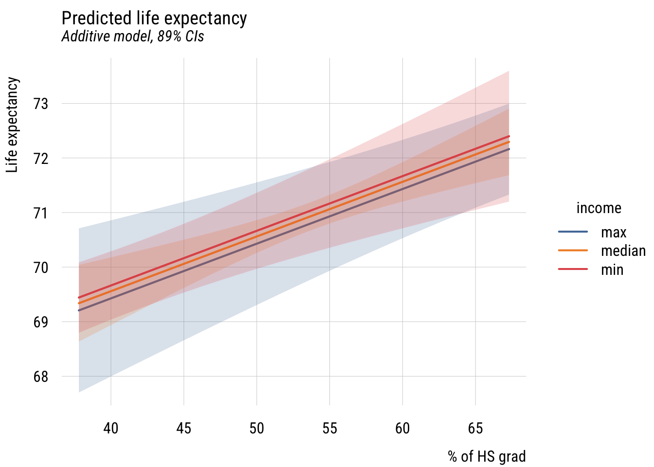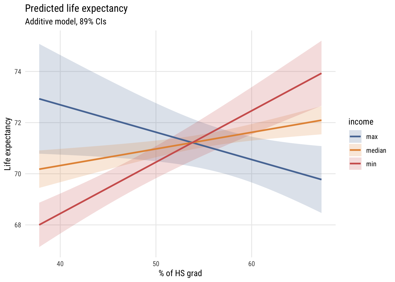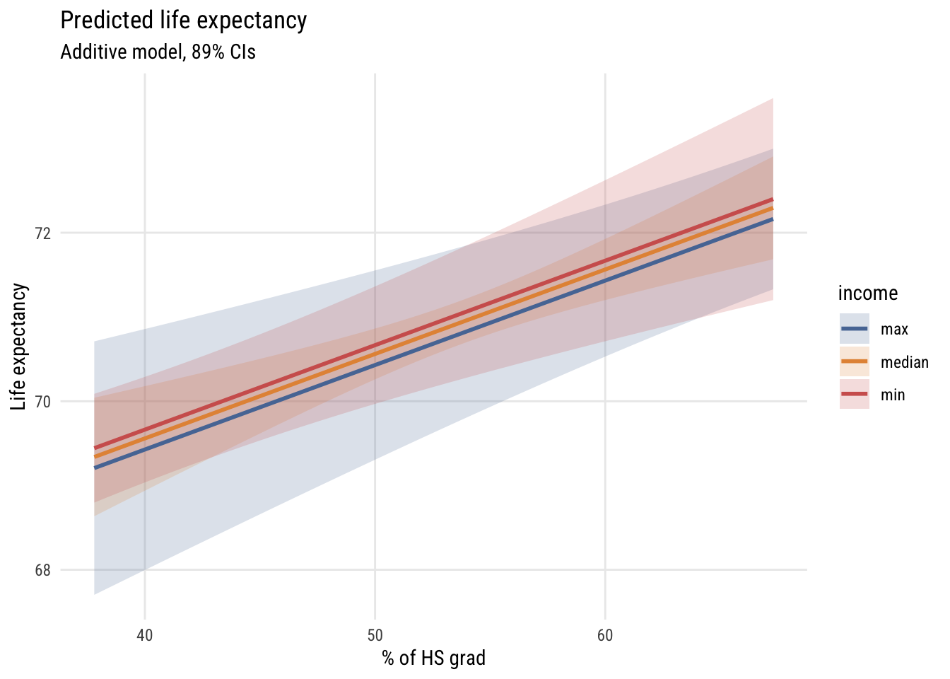 subtitle = "Additive model, 89% CIs",