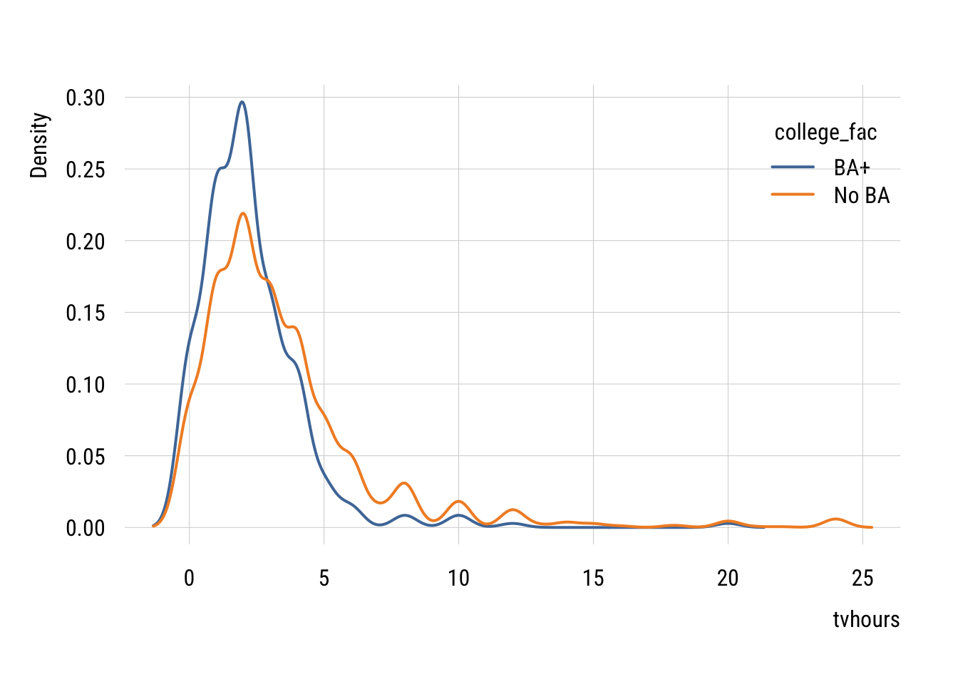 Here is the comparison of the hours of TV watched per day between college-educated and non-college educated respondents.