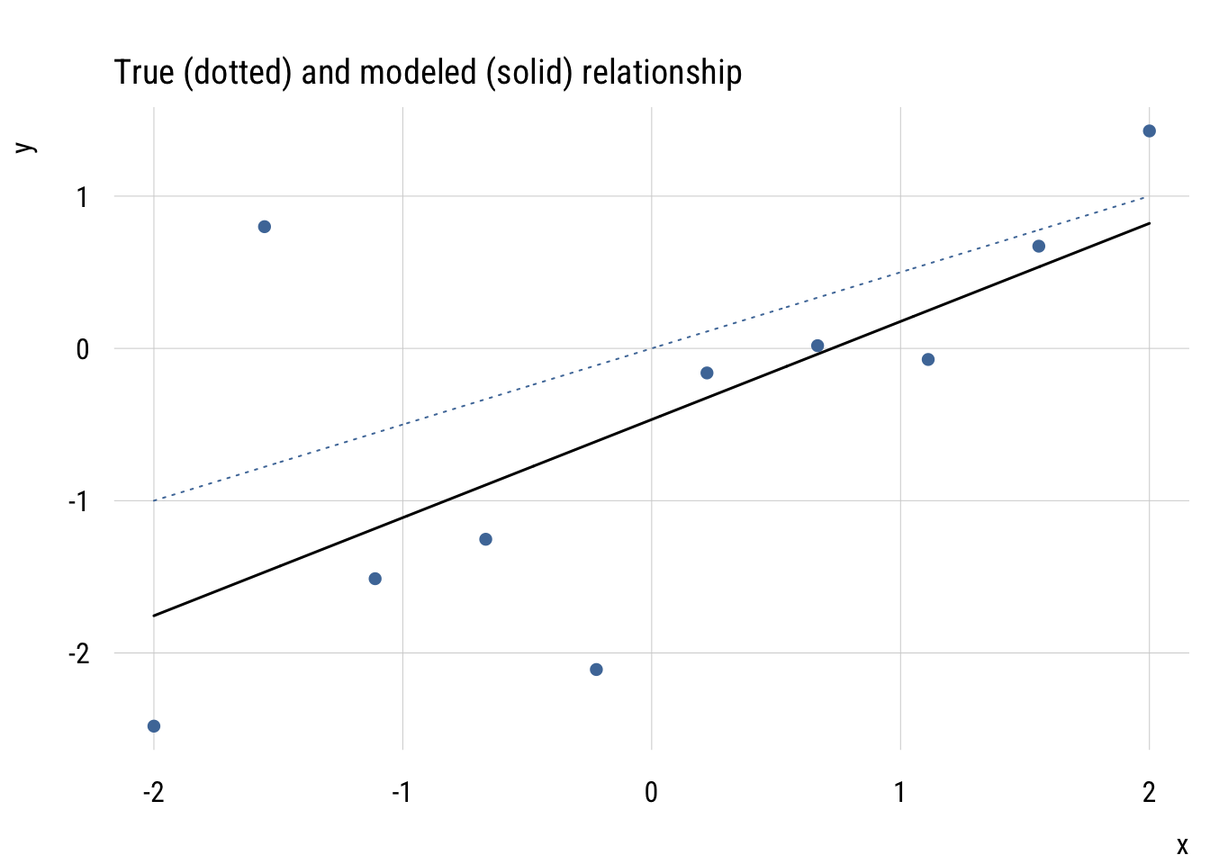 y <- 0 + .5*x + rnorm(n = 10,