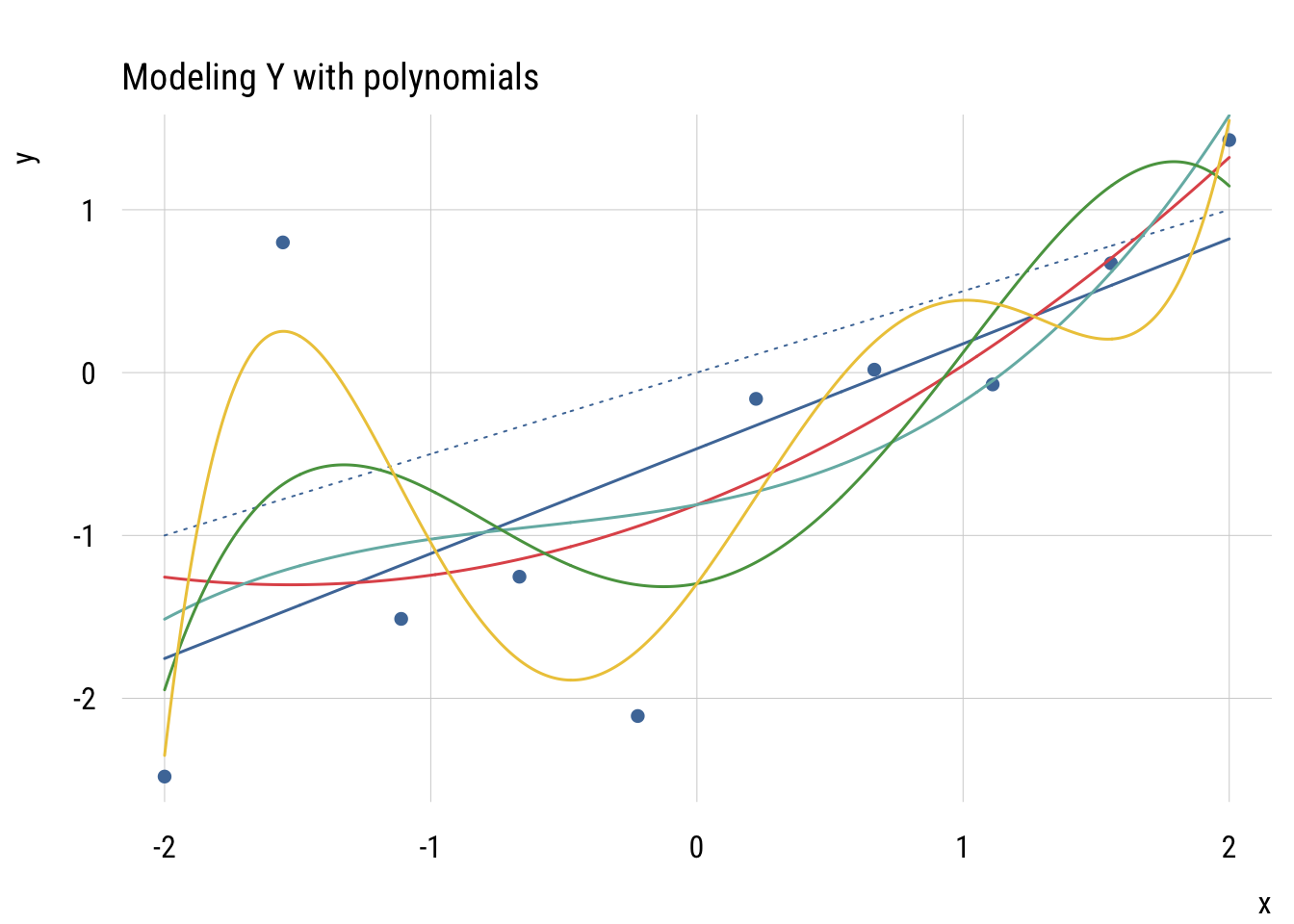 main = "Modeling Y with polynomials")