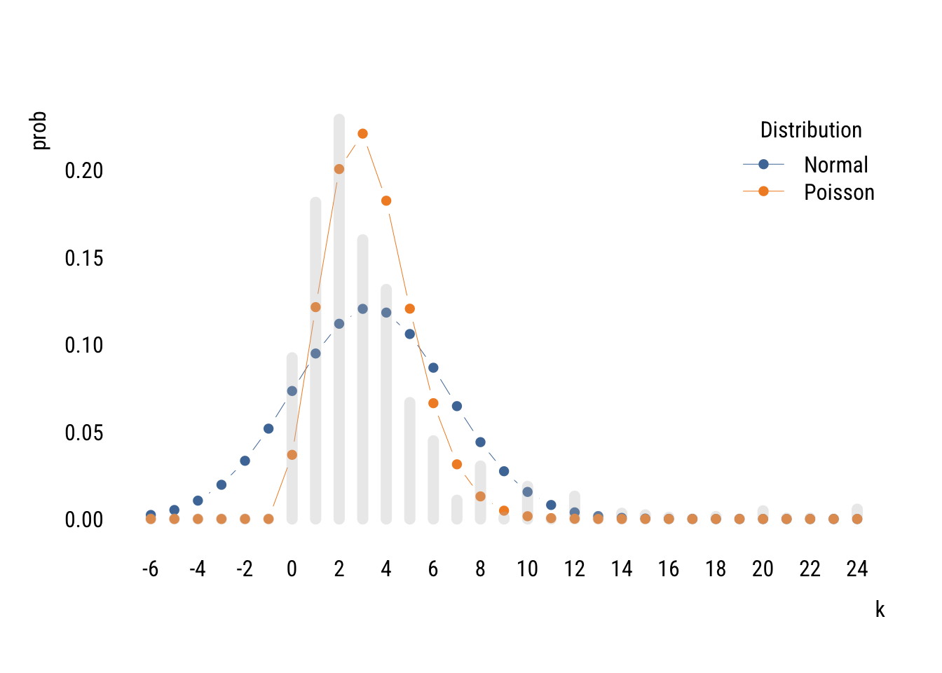 mutate(prob = dpois(x, lambda = lambda))Show code